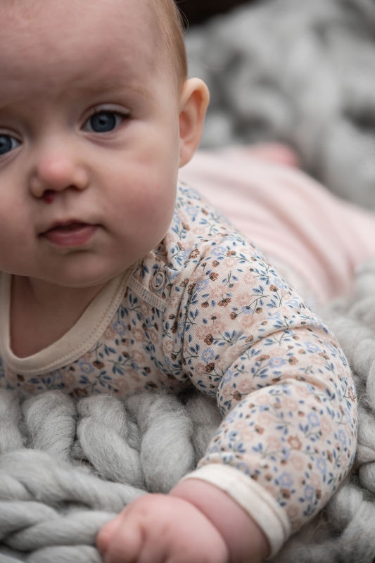 Celavi Ullbody Baby Ull Bambus Blomsterprint Deauville Mauve (Kun str 70, 80 og 90)