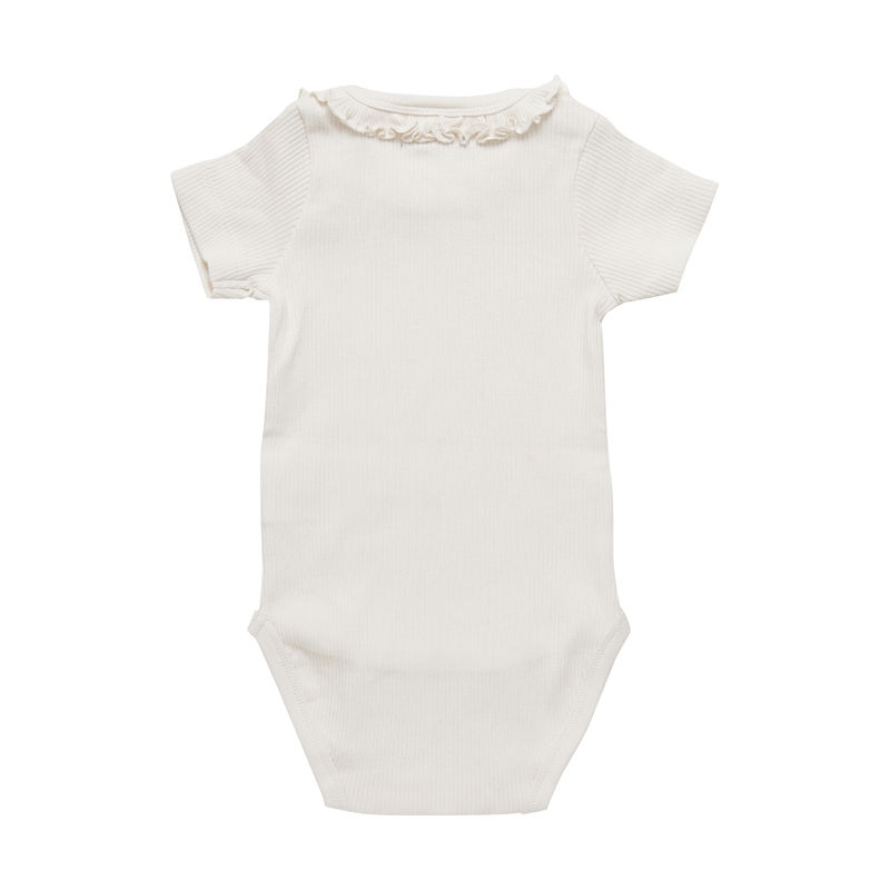 Søt body fra Fixoni med lange ermer og volang krage. Bodyen er laget av økologisk bomull.