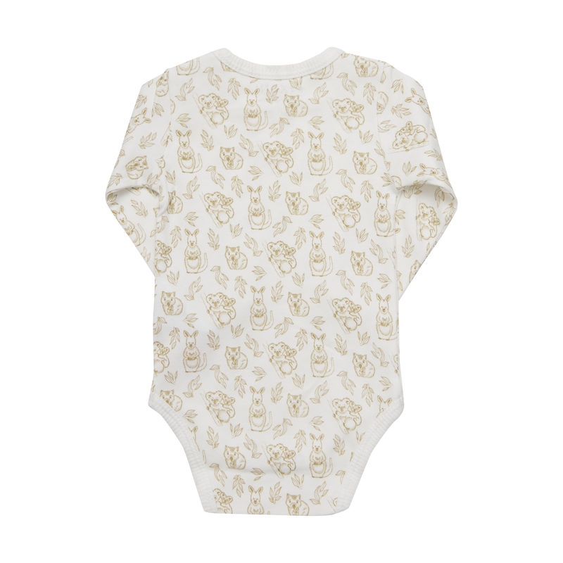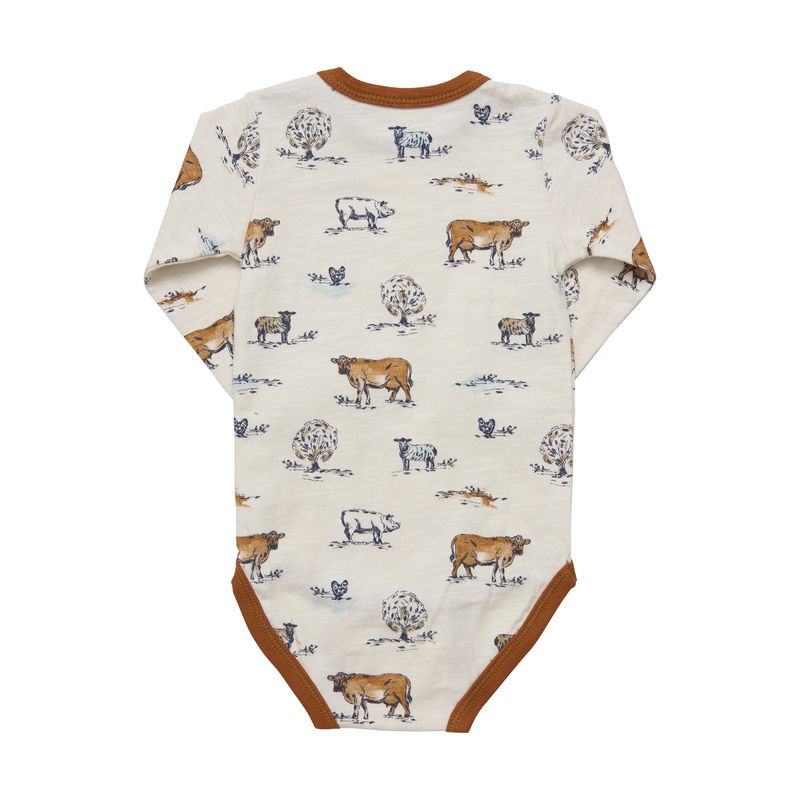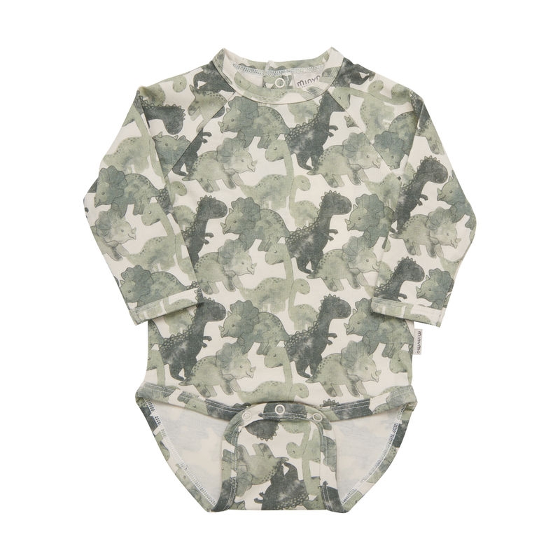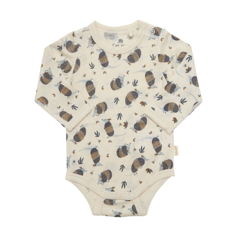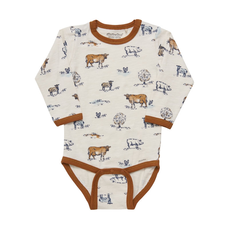 Minymo Body Baby Langermet Sopp og dyreprint Eggnog (Kun str 68 og 80)
