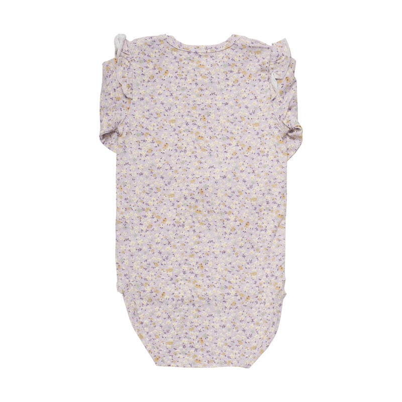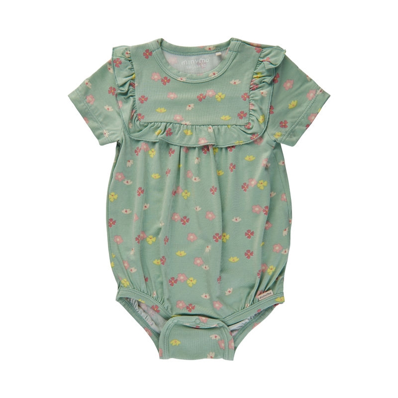 Nydelig body fra Minymo med blomsterprint på framsiden og søte detaljer nederst på ermene, rundt halsen og på skuldrene. Passer perfekt til de andre nyhetene fra samme kolleksjon.