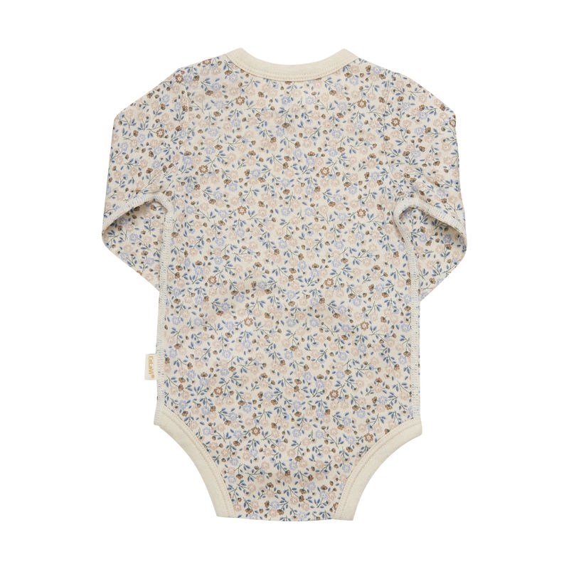 Nydelig og myk ullbody til baby fra Celavi med blomsterprint over det hele. Bodyen er laget av 100% ull på utsiden og 100% bambusviskose på innsiden så den er utrolig myk og god å ha på. Spesielt egnet for barn med sensitiv hud.