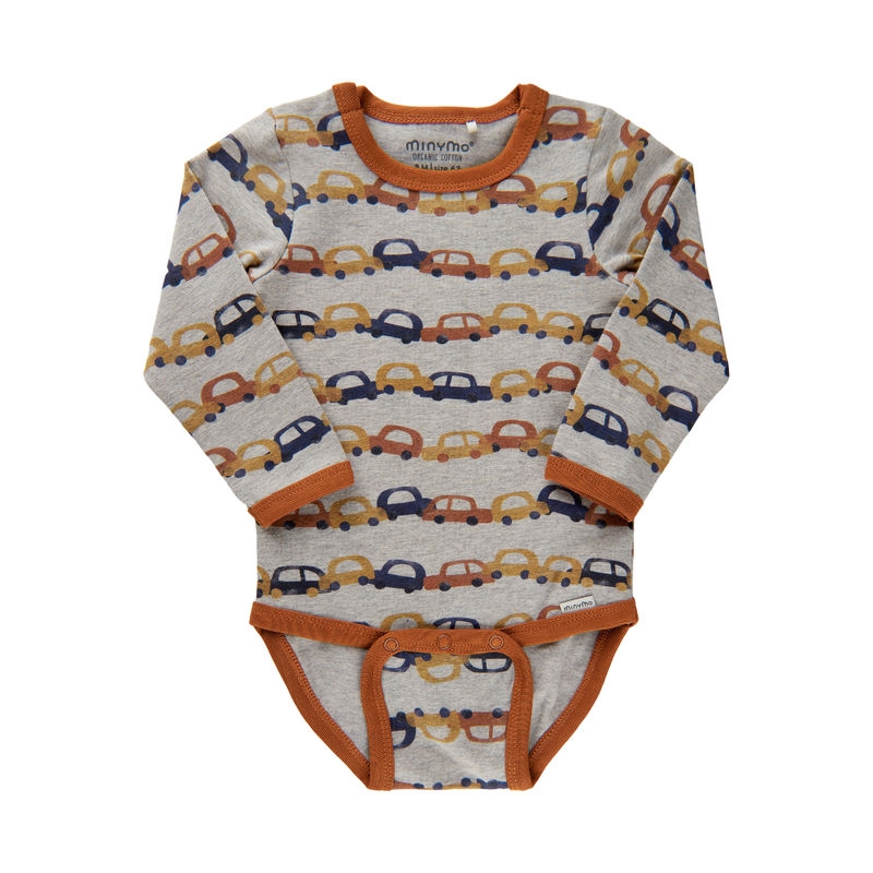Minymo Body Baby Langermet Bilprint Beige Melange (Kun str 62 og 74)