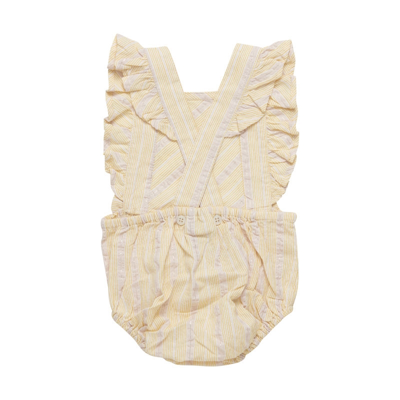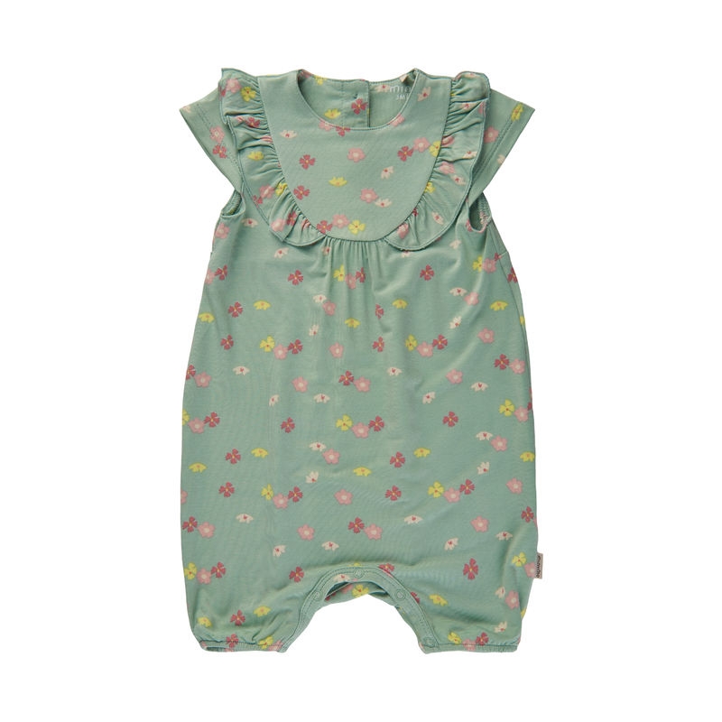 Nydelig sommer drakt fra Minymo med korte ermer og ben. Drakten er laget av myk bambusviskose og har helprint av blomster samt volanger på brystet. Det finnes også en body i samme design.