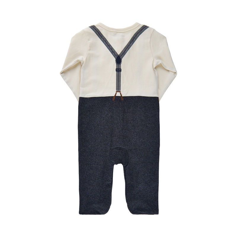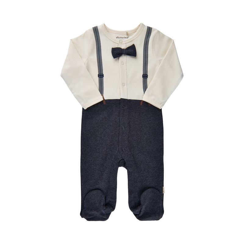 Fin heldrakt fra Minymo med påsydde føtter, vest samt sløyfe. Perfekt til fest! Det finnes også en body i samme design.