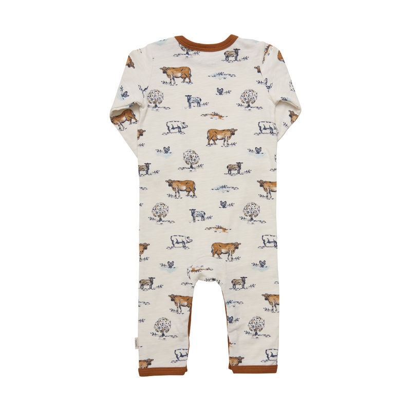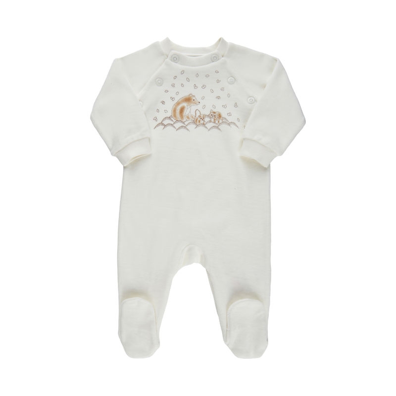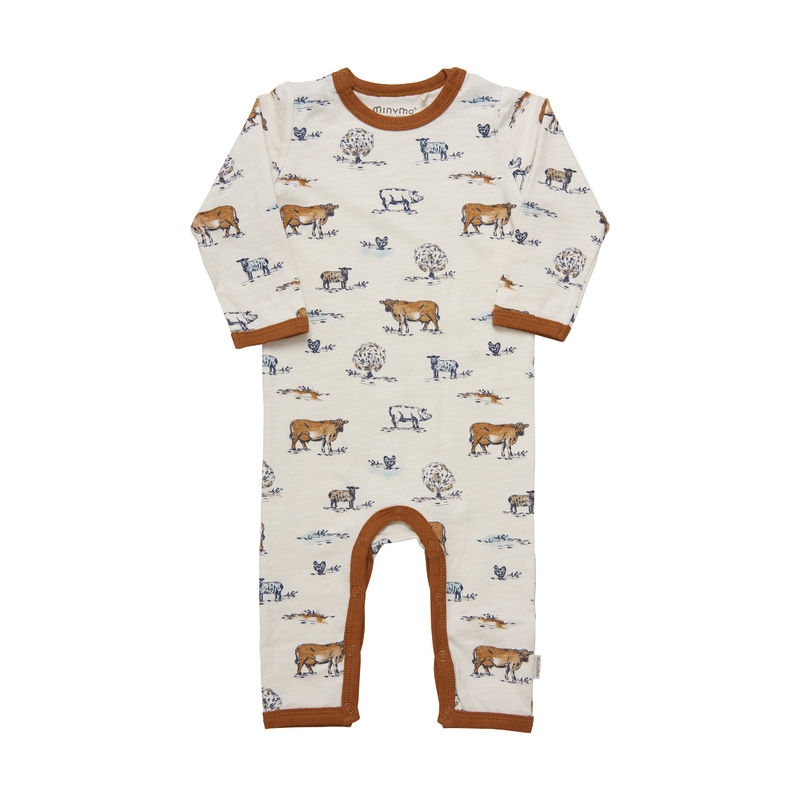 Minymo Heldrakt Baby Langermet Sopp og dyreprint Eggnog (Kun str 80 og 92)