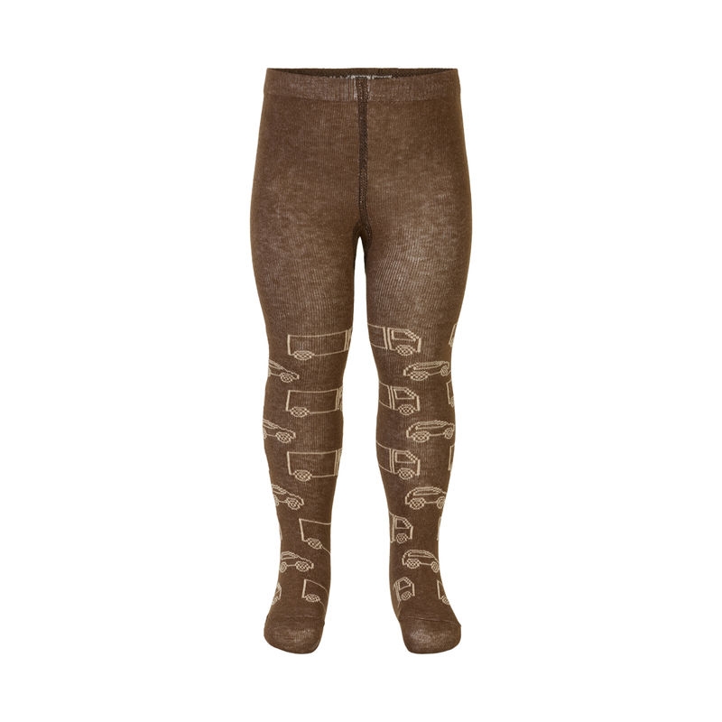 Minymo Strømpebukse Barn Med fot Biler Cocoa Brown