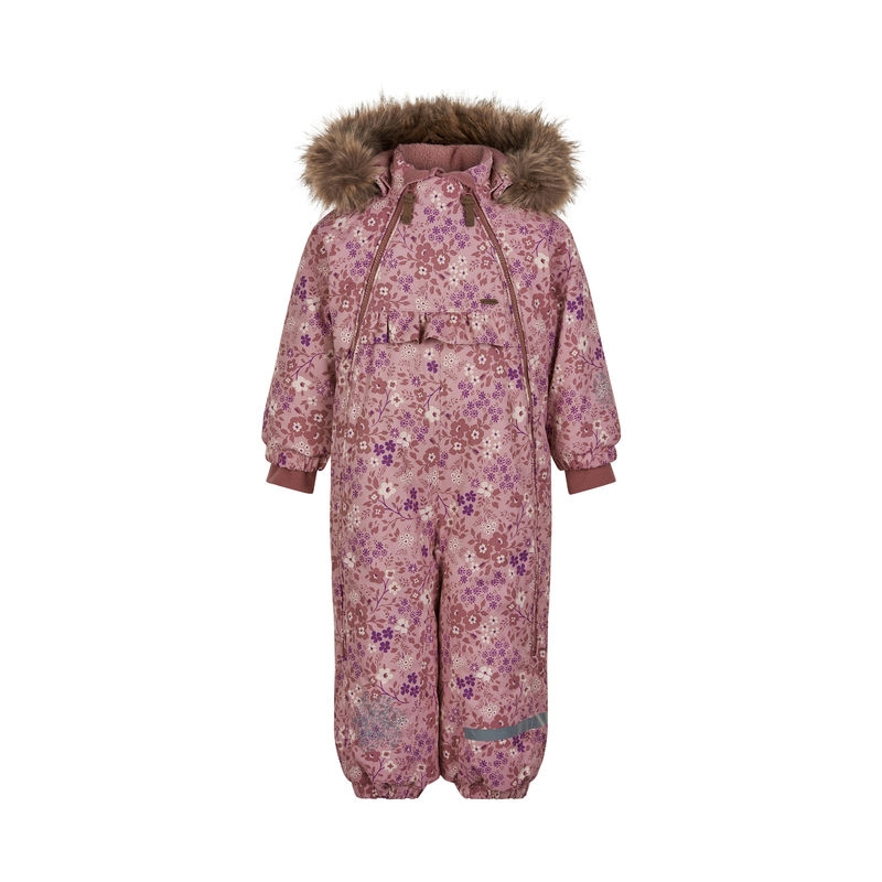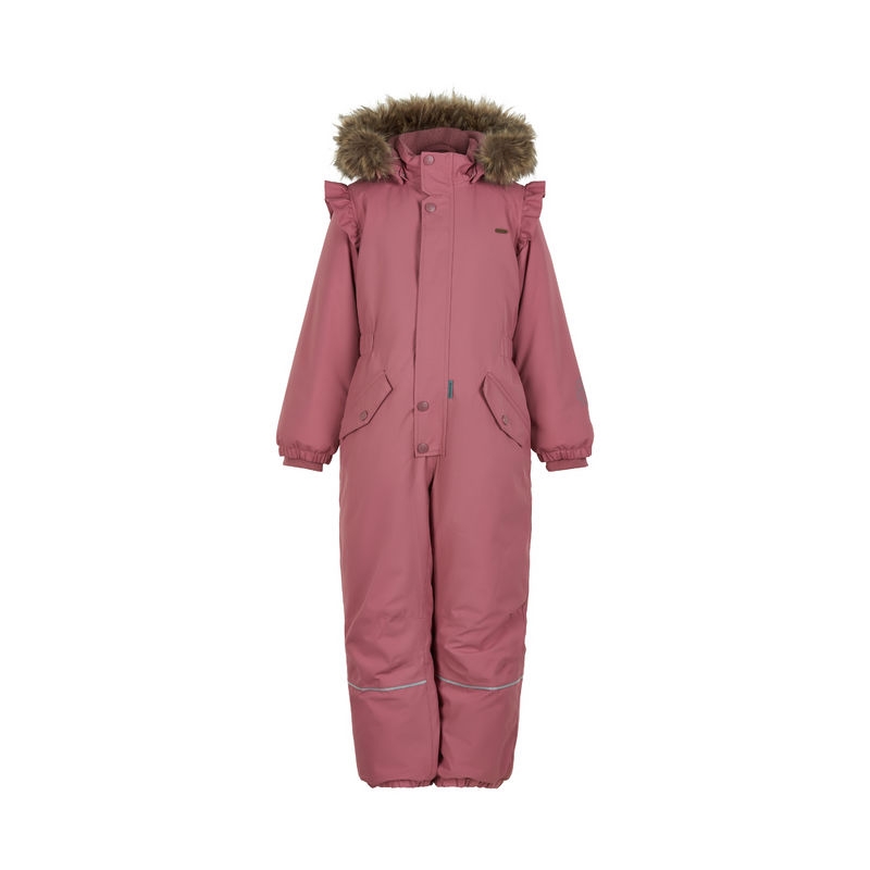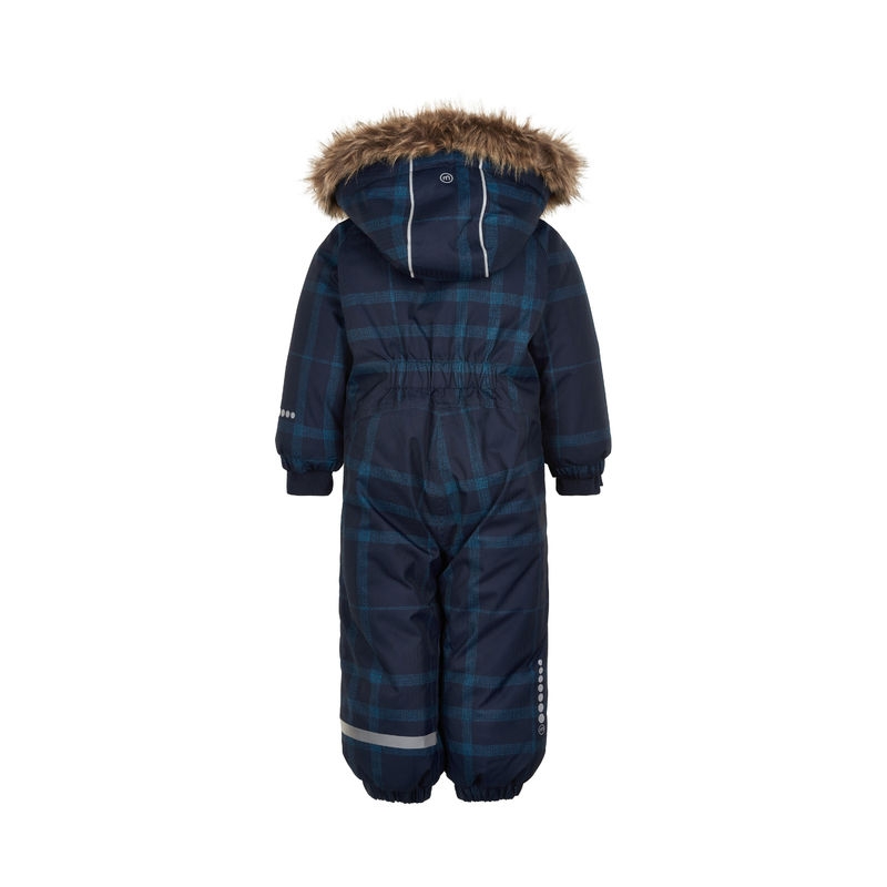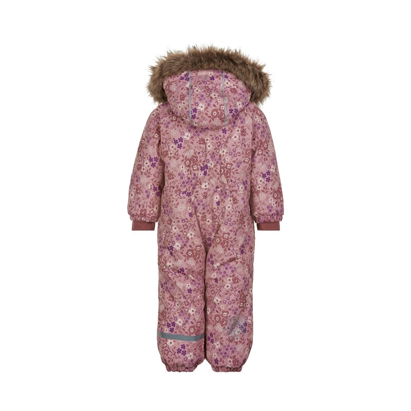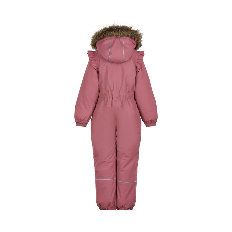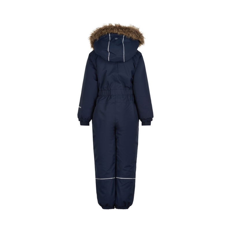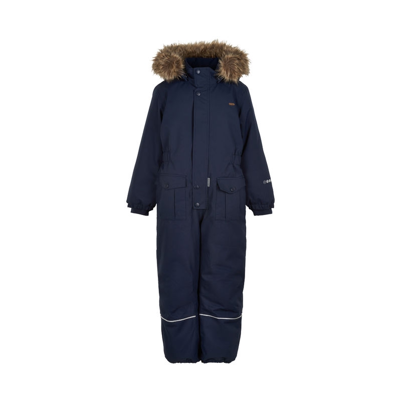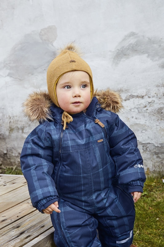 Flott ensfarget vinterdress fra Minymo med strikk bak på ryggen for en fin passform og en fin hette med fuskepels. Dressen er vindtett, vanntett og puster. Finnes i flere forskjellige fargevarianter og det finnes luer, votter og hansker som passer til.