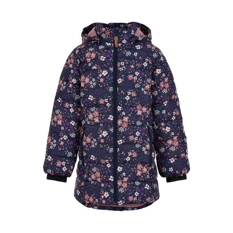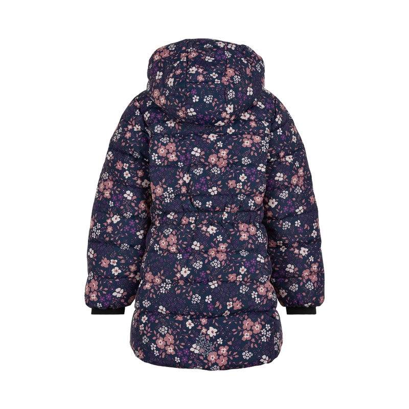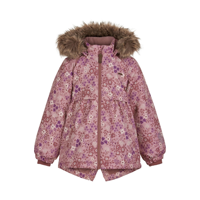Flott vinterjakke til de minste fra Minymo med blomsterprint og mange nydelige detaljer. Jakken er vindtett, vanntett og har god pusteevne. Det finnes også luer og votter som passer til samt en vinterdress og jakke for større barn i samme mønster.