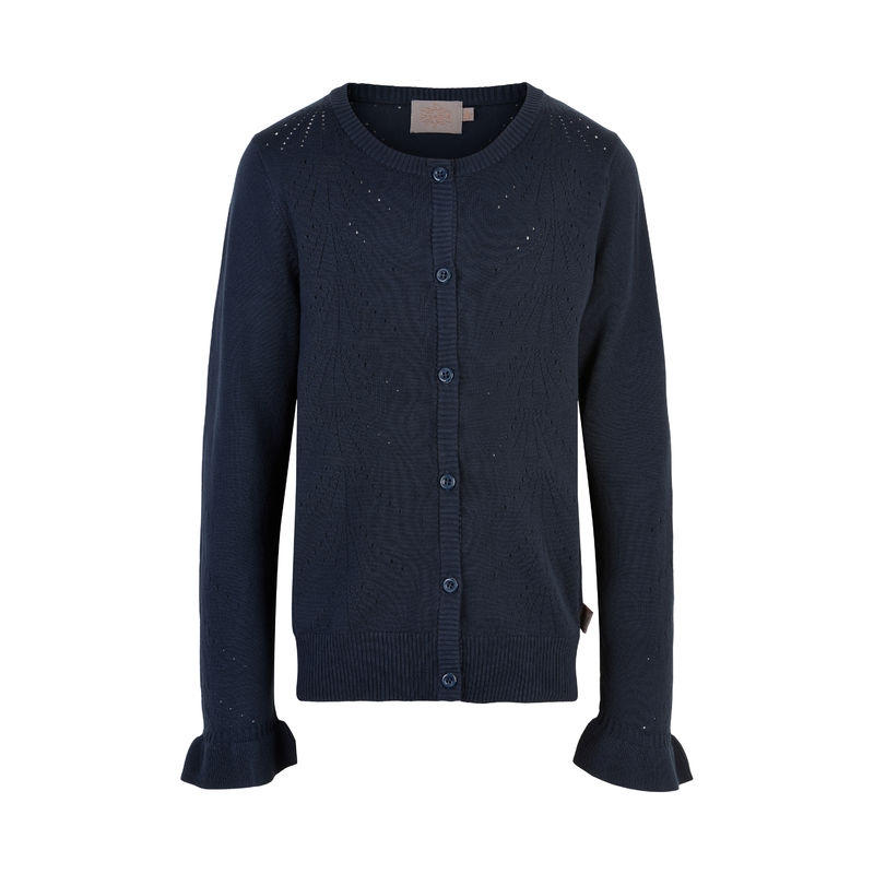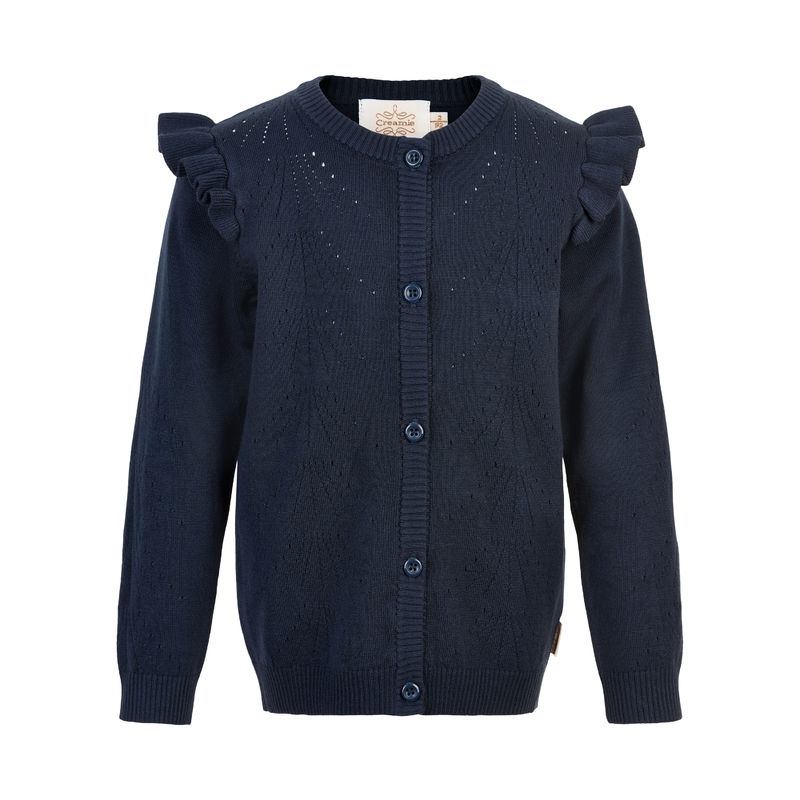 Creamie Cardigan Barn Strikket Pointelle Volanger Stor Total Eclipse (Kun str 122)