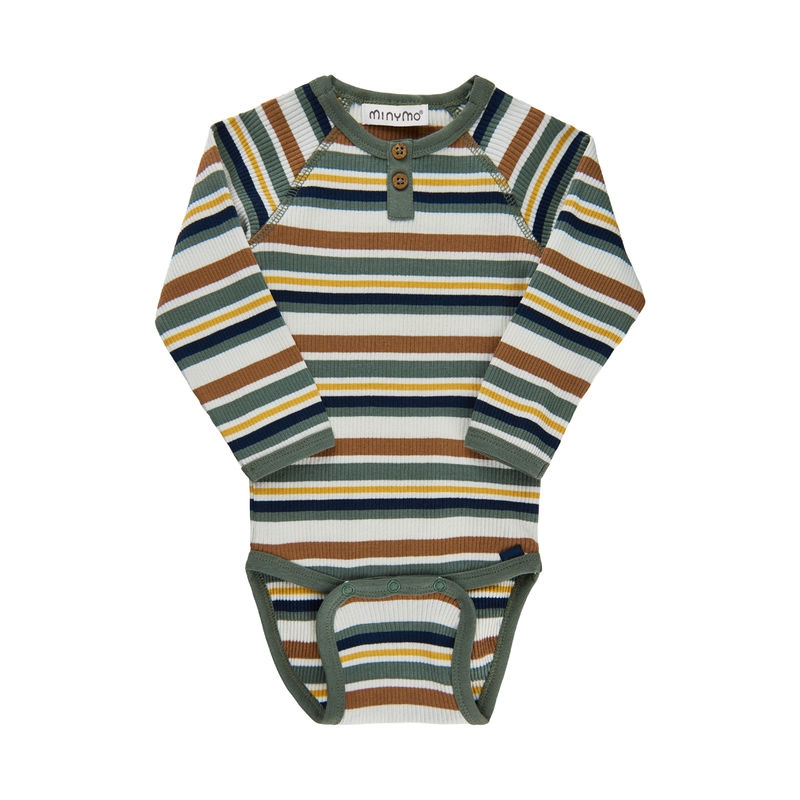 Fin langermet skjortebody fra Minymo med krage og knepping nesten hele veien ned foran. Det finnes også en skjorte til større barn i samme farge og design for en fin søskenmatch.