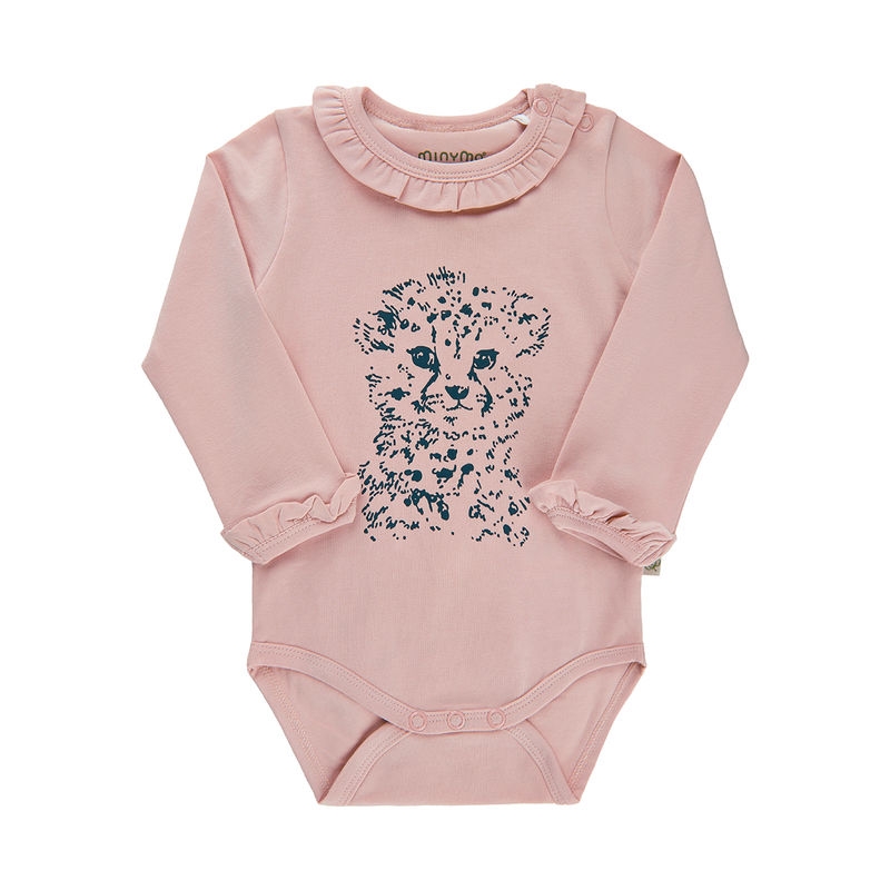 Fin langermet babybody fra Minymo med dyreprint på brystet.