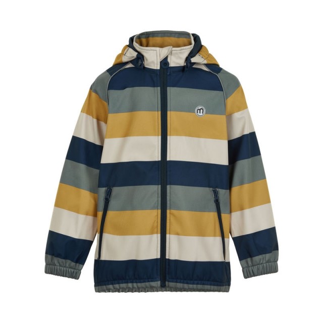 Fin stripete softshell jakke fra Minymo med myk fleece innvendig. Den er svært behagelig å ha på og perfekt til overgangsvær. Finnes i to fargevarianter. Det finnes også en softshell heldress i samme design for de minste.