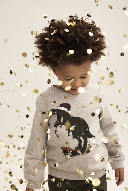 Tøff sweat genser med et dinosauruskranie i sølv på forsiden og tekst hvor det står: T-rex wild territory. Genseren er laget av økologisk bomull.