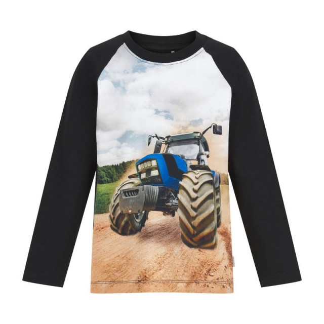 Kul langermet t-skjorte fra Minymo med print av en traktor på fremsiden.