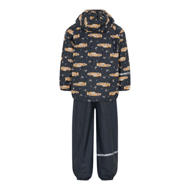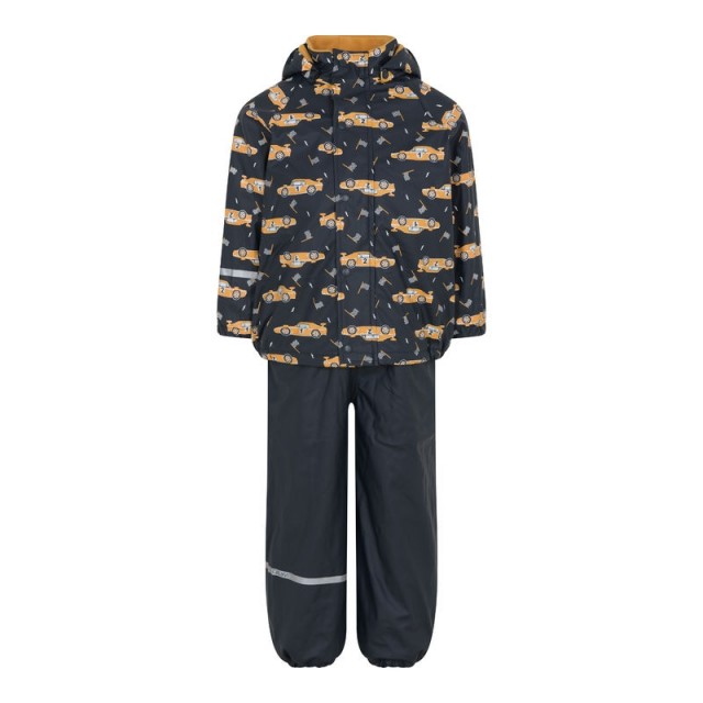 Ensfarget resirkulert PU regnsett fra CeLaVi. Regnsettet er foret slik at det holder barnet god og varm på kaldere dager. Finnes i flere fine fargevarianter både med og uten print.