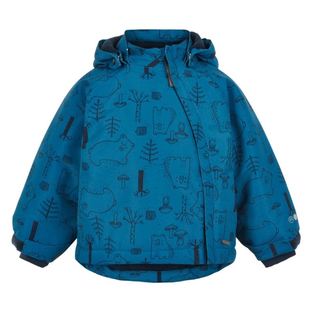Flott vinterjakke til de minste fra Minymo med isbjørnprint og mange nydelige detaljer. Jakken er vindtett, vanntett og har god pusteevne. Det finnes også luer og votter som passer til samt en vinterdress og jakke for større barn i samme mønster.