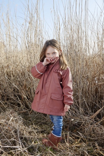 Todelt regntøysett med fleecefòr fra Celavi. Settet består av ensfarget jakke og bukse. Det finnes også heldresser for de minste i samme farge samt luer som passer til.